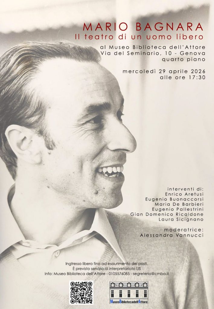 Mercoledì 29 aprile alle 17.30 presso il Museo dell'Attore di Genova, parteciperò alla tavola rotonda "Mario Bagnara, il teatro di uomo libero".