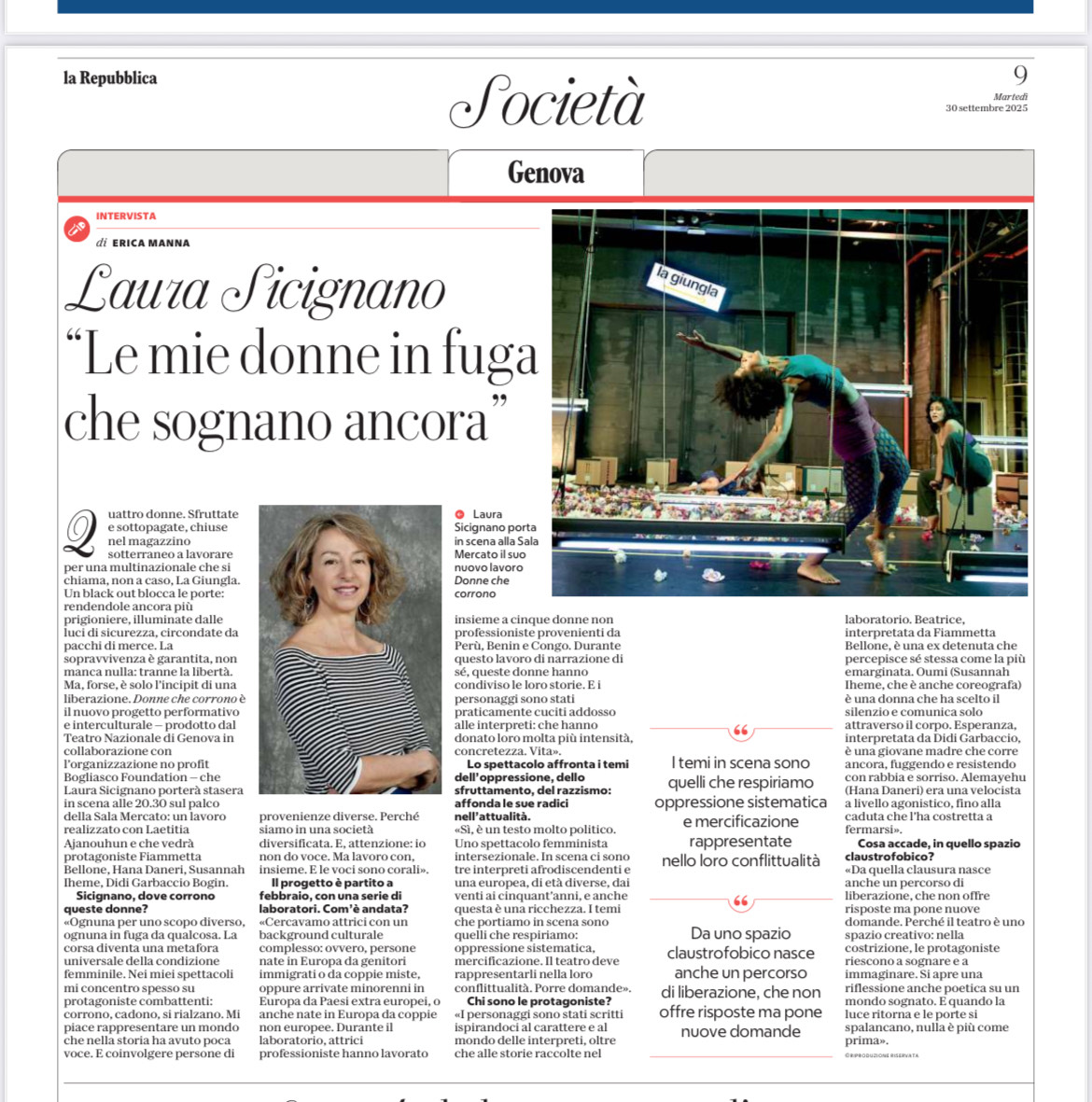 Donne che corrono, lo spettacolo e progetto sociale di Laura Sicignano - MenteLocale